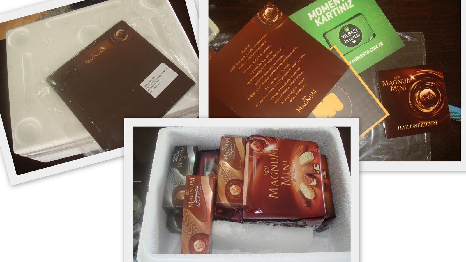 Algida 'nın göndermiş olduğu bu mutluluk bende doping etkisi yarattı :D Hava soğukmuş, hasta olurmuyum diye hiç düşünmeden hemen birini kapıp mideye indirdim bile.. Zaten yaz kış dondurma yiyen ve seven biriyim.. Benim bu kadar sevmeme rağmen eşimin dondurmayla arası hiç yoktur.. Zar zor dondurma yiyelim diye ısrar edersem sadece Magnum yer :D Bu paket onun icinde güze bir yılbaşı hediyesi oldu!!